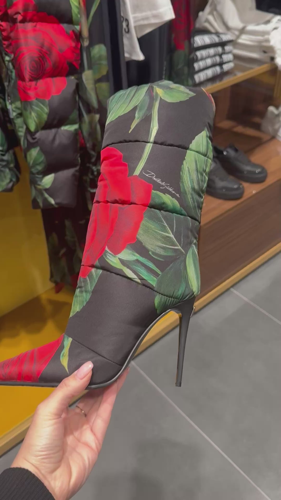 Dolce & Gabbana – Gesteppte Stiefel mit Rosenprint