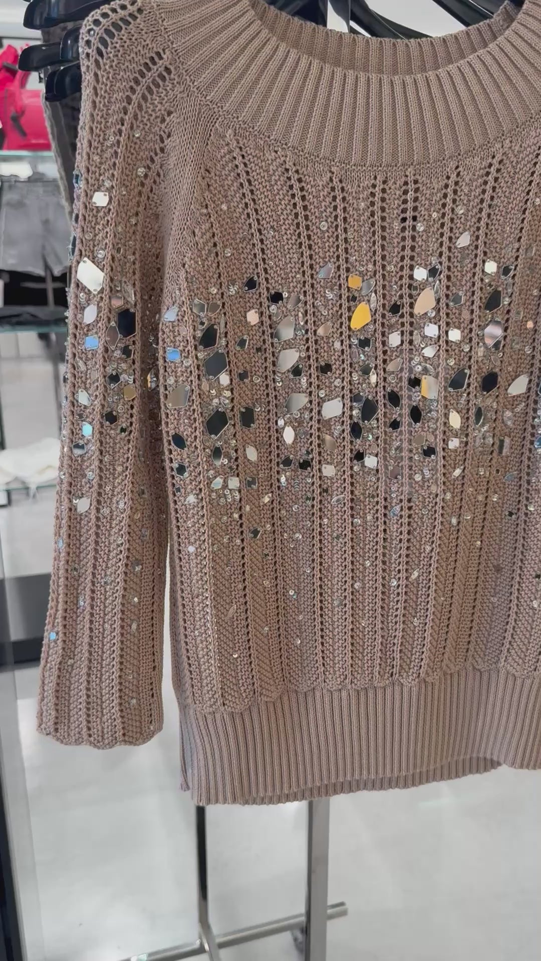 Ermanno Scervino Beige Knit Sweater with Mirror Embellishments