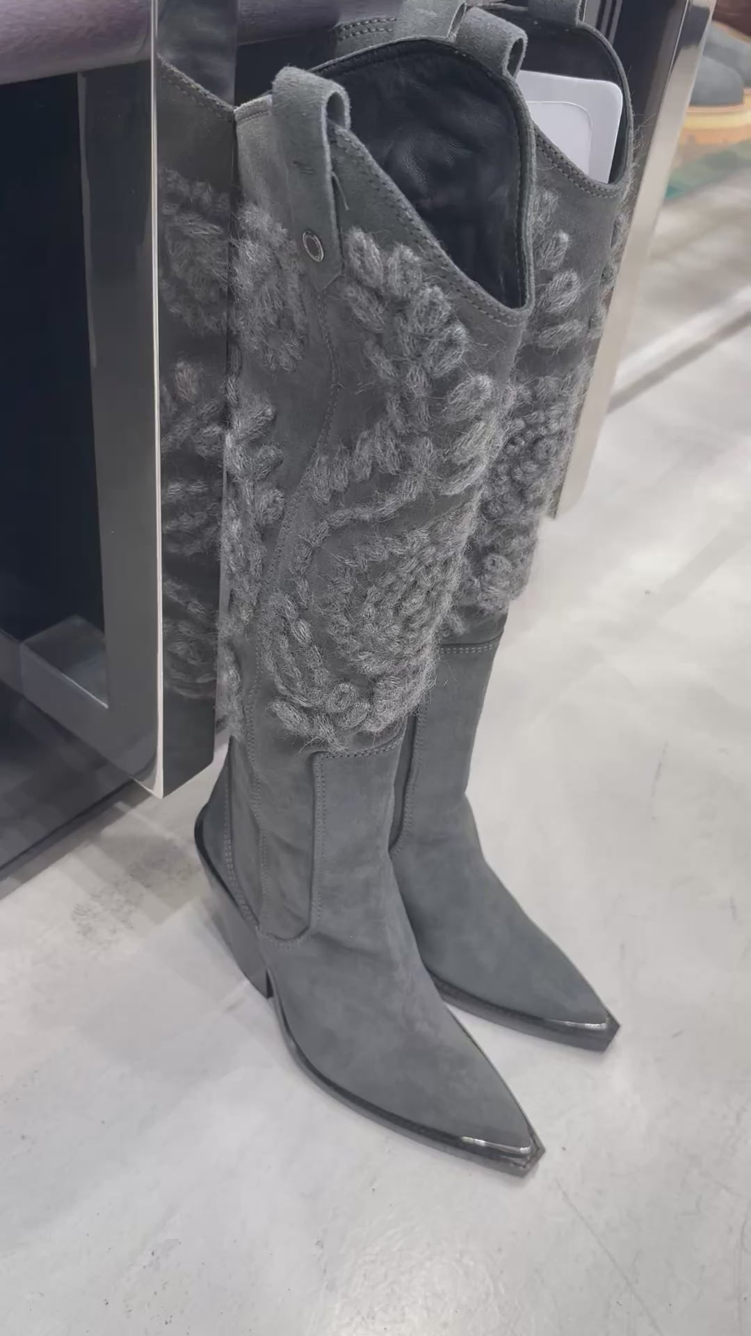Ermanno Scervino Suede & Wool Embroidered Boots